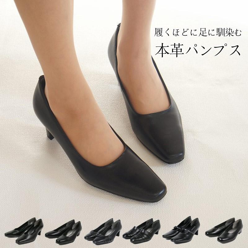 amazon アクアレディ 本革を使用したワンランク上のブラックフォーマルパンプス 幅広 3e 4e 5e パンプス