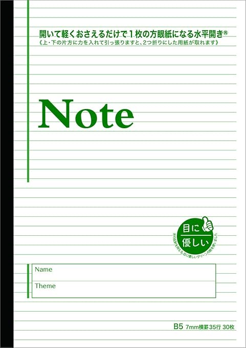 amazon 目に優しいノート b5判 7mm横罫 紙色 グリーン 30枚 水平開き ナカプリバイン 文房具 オフィス用品 文房具 オフィス用品