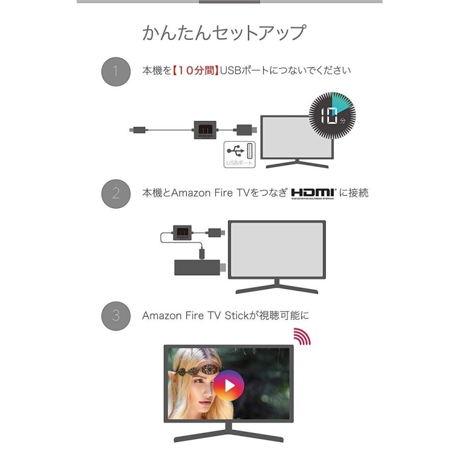 最新版 amazon fire tv stick専用 mission cables あらゆるテレビ usbポートから ac電源を使用せず利用可能 テレビ tv 配線を美しく 壁掛けテレビにも最適 tv マウント アクセサリー fire tv 本体は含まれません synkq