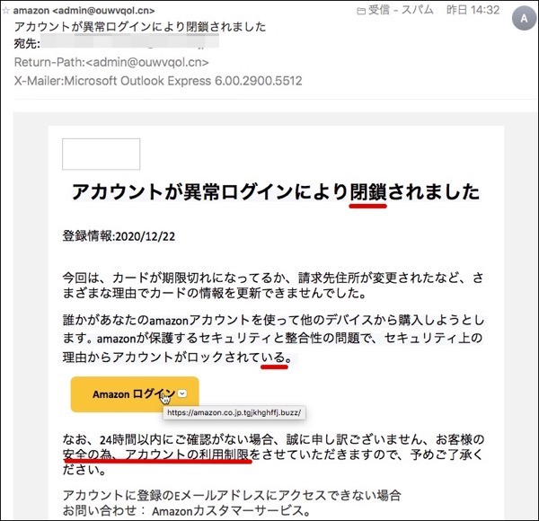 amazonからの あなたのアカウントは停止されました は詐欺 wnkhs net