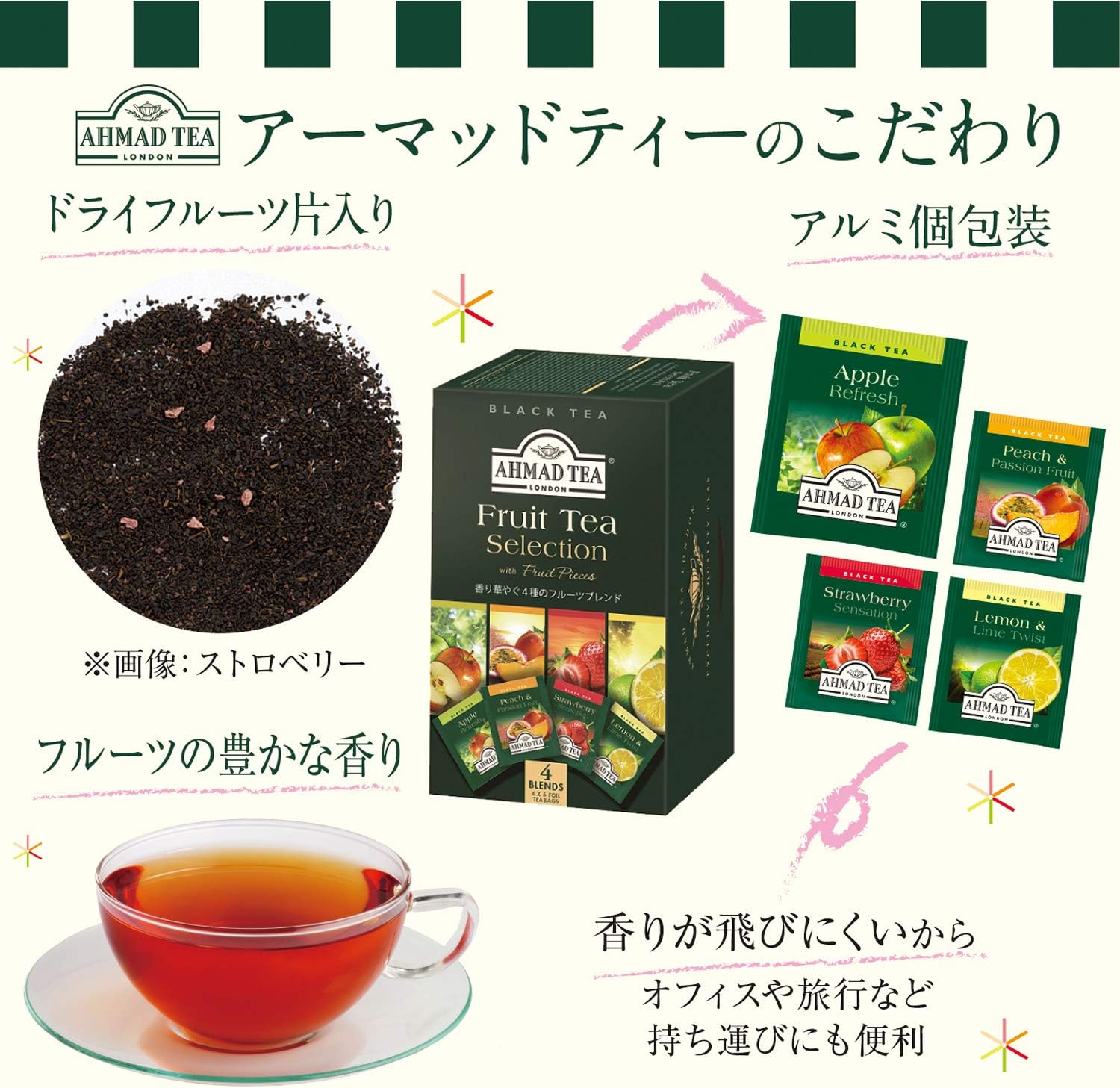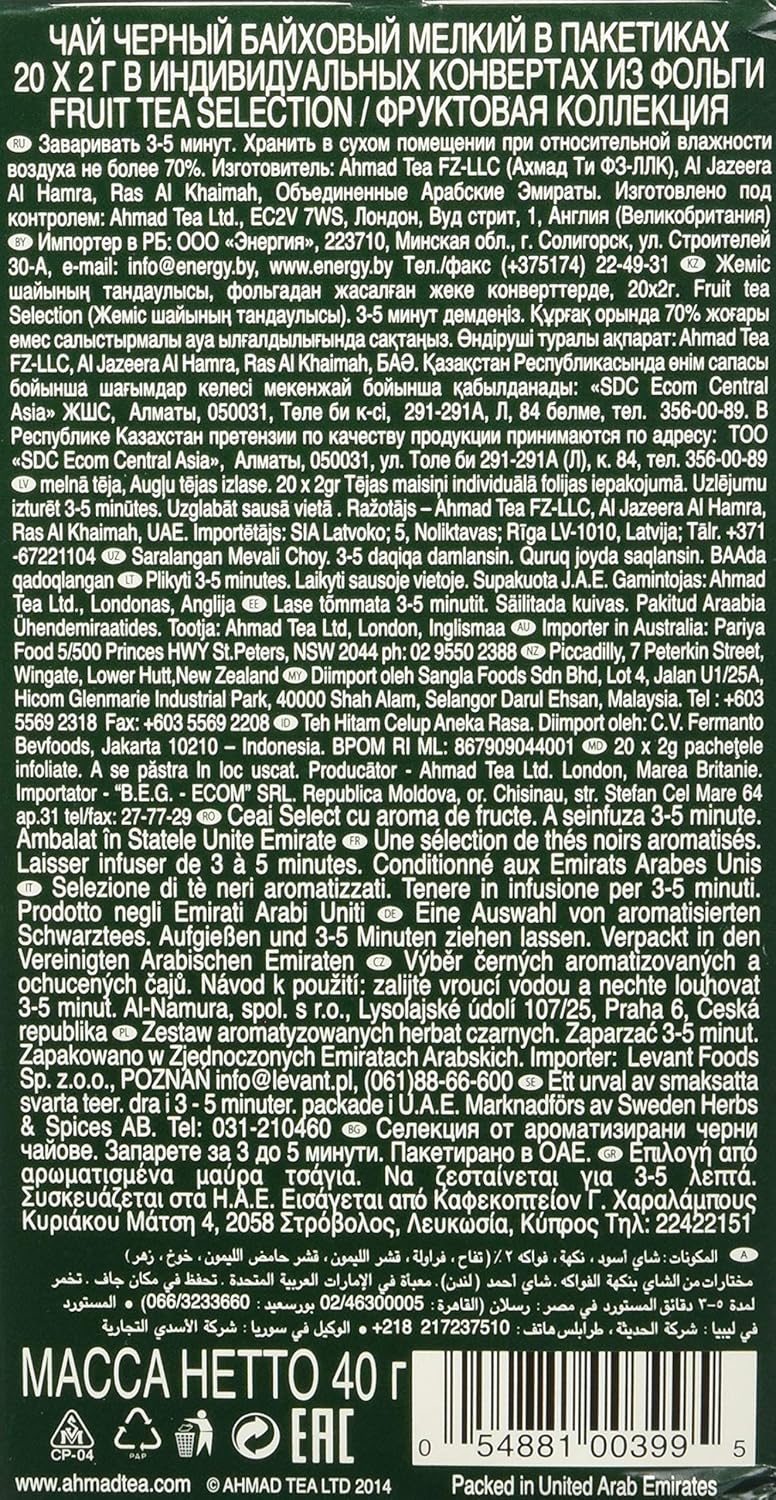 ahmad tea アーマッドティー フルーツセレクション ティーバッグ 20袋 3個 アソート アップル レモン ライム ピーチ パッションフルーツ ストロベリー
