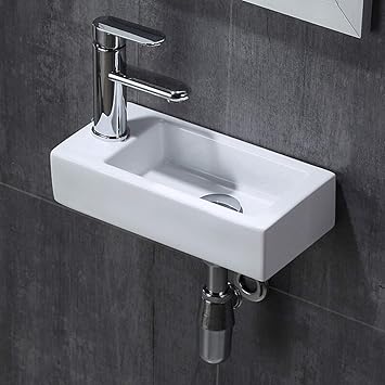 amazon おしゃれ 洗面ボール 小型洗面ボウル 壁掛け 洗面台 洗面鉢 手洗い器 手洗いボウル 手洗台 壁付け型 浴室洗面台 手洗い鉢 バルコニー 陶器製 手洗器 おしゃれ シンプル 和風 洋風 ミニ型 方形 左側 365 185 90mm 洗面ボール 洗面器