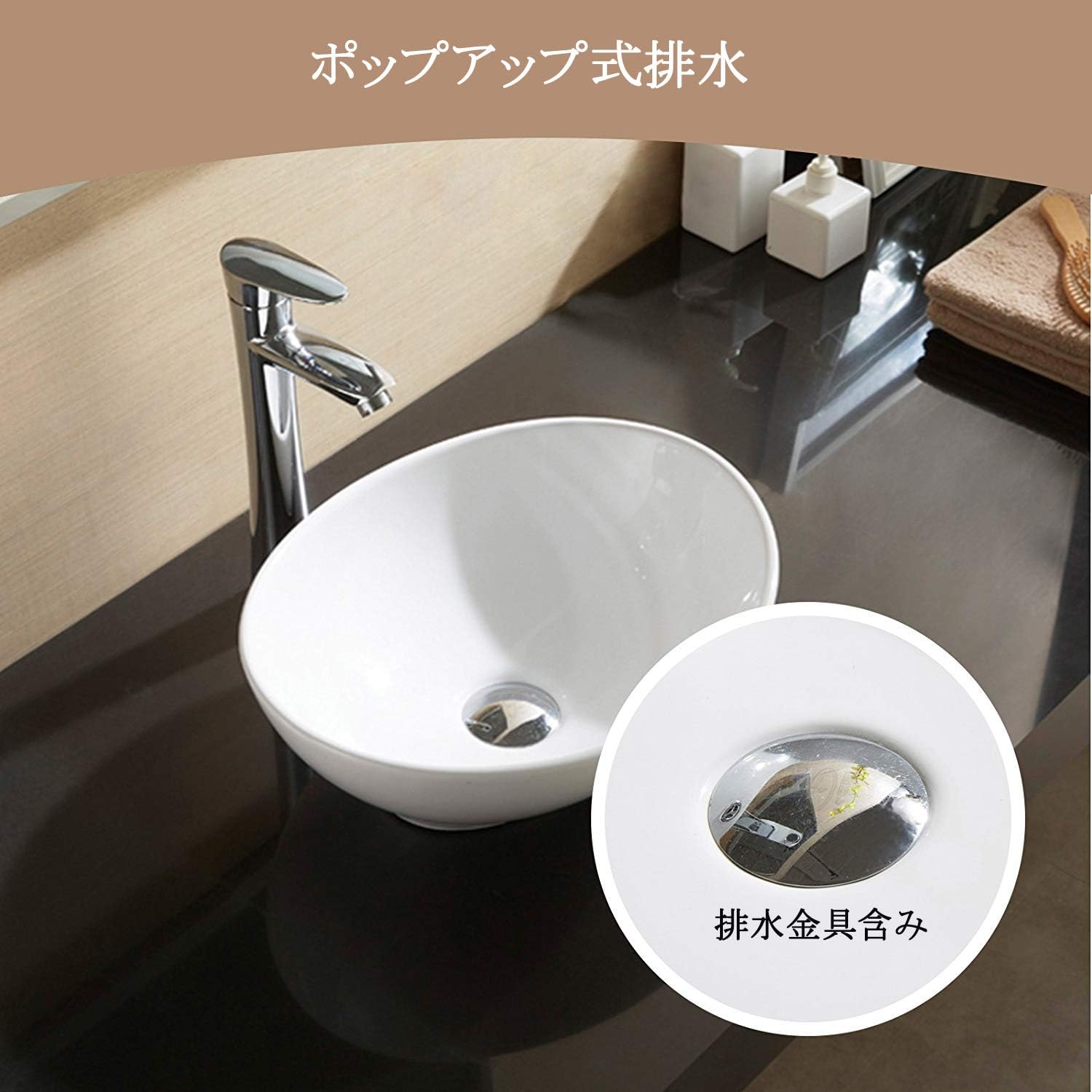 洗面ボウル 洗面ボール wowatt 洗面台ボウル セット 楕円てあらい洗面ボール 洗面器 白陶器製 排水金具付き 浴室用 キッチン用 41 34 14 5cm 高温焼き上がり 和風 洋風 節水 蛇口は付きません