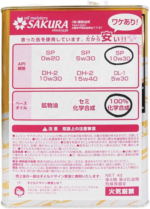 訳ありオイル缶 2缶セット 5w 30 0w 20 サクラ エンジン オイル sp 5w 30 0w 20 4l缶 各1缶 100 化学合成油 2缶セット 訳ありオイル缶 5w 30 0w 20