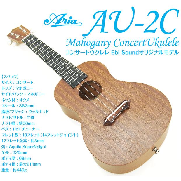 ウクレレ アリア コンサート au 2c マホガニーボディ 単品ケース付 aria 甘い音色のマホガニー ソロプレイ向き エンドピン付 ebisoundオリジナル u