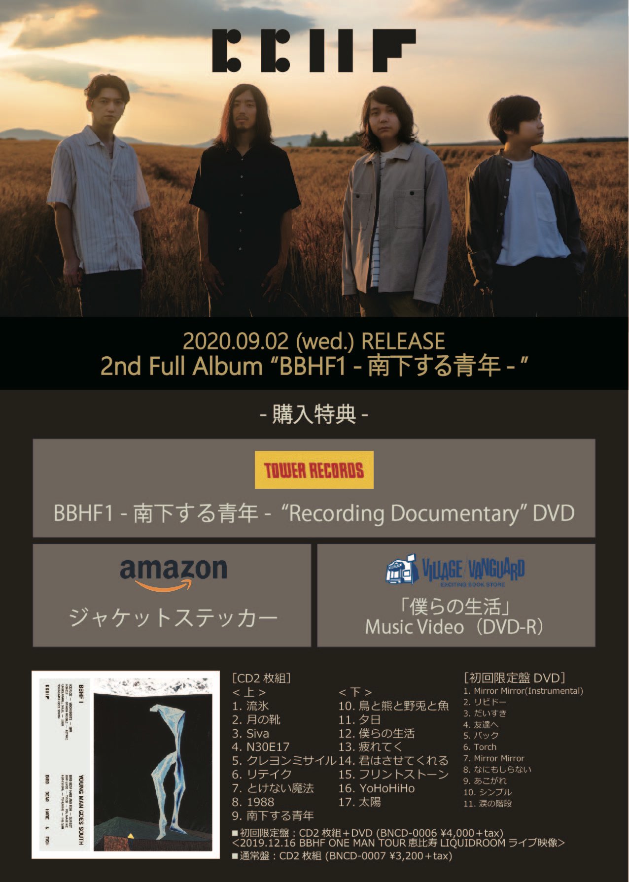 bbhf 2ndフル アルバム bbhf1 南下する青年 5 27リリース決定 2枚組全17曲を収録