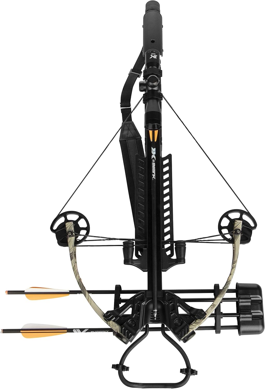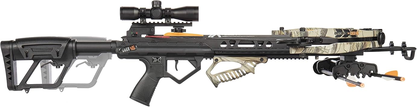 amazon com bear x saga 405 ready to shoot crossbow package with 4x32 scope quiver bolts cocking rope and wax sports outdoors
