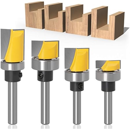 bestgleクリーニング底トリマービット超硬刃トリマー替刃 4本セット1 4 面取りカッターほぞカッター タングステン鋼ルータービット電動トリマー用ビット木工フライスカッター ベアリング付き木工用 切削工具 戸板彫刻