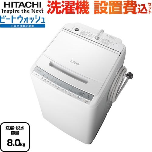 日立 全自動洗濯機 ビートウォッシュ 8kg ホワイト bw v80a w