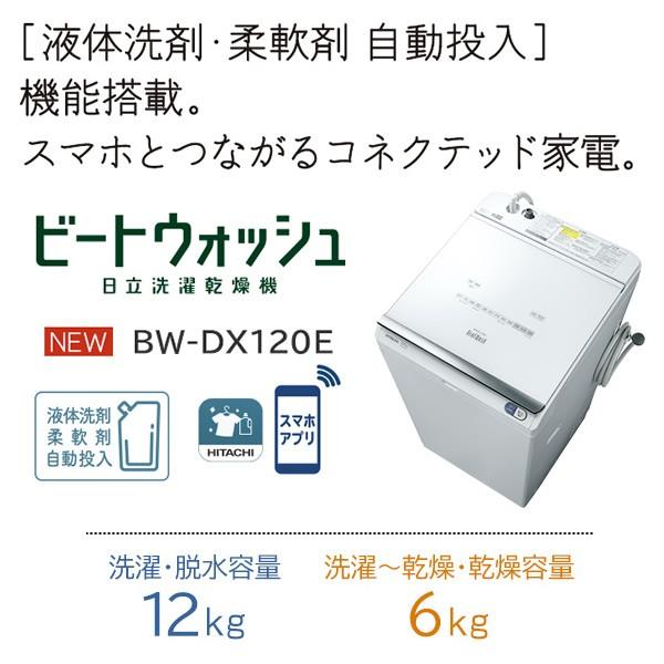 日立 全自動洗濯機 ビートウォッシュ 洗濯容量12kg aiお洗濯 自動おそうじ 液体洗剤 柔軟剤自動投入 bw x120e w ホワイト