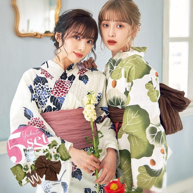 ディータ dita 本格 女性 浴衣 すぐにお出かけフルセット 浴衣本体 ゆかた 作り帯 つくりおび 下駄 ゲタ の基本3点セット 腰ひも 着付け紐 着付けスタイルブック 冊子 の計5点 フリーサイズ レトロモダン手毬菊