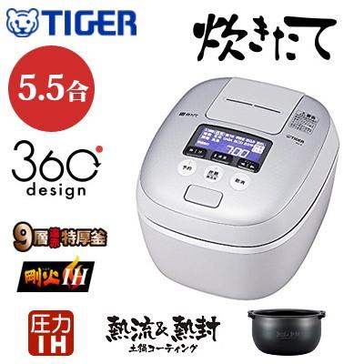 タイガー魔法瓶 tiger 炊飯器 5 5合 圧力ih 土鍋コーティング 極うま機能付き 炊きたて ホワイトグレー jpc a101 wh
